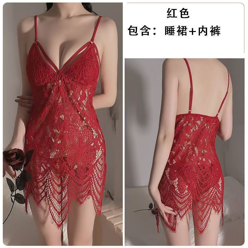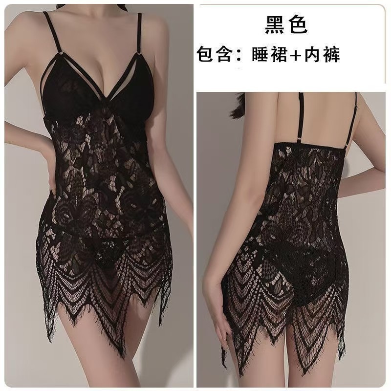 female lace transparent Bohemian style sling hollow pajamas nightdress (8586)
