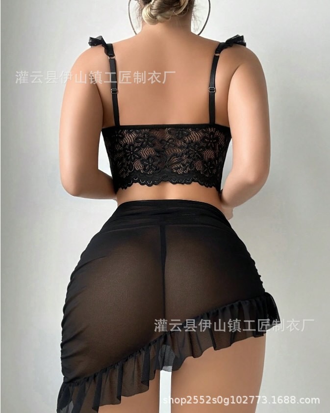 Hollow Out Fun Sexy Women's Floral See-Through Wholesale Sexy Lace Sleeveless Xiyin Set Short Dress 4118