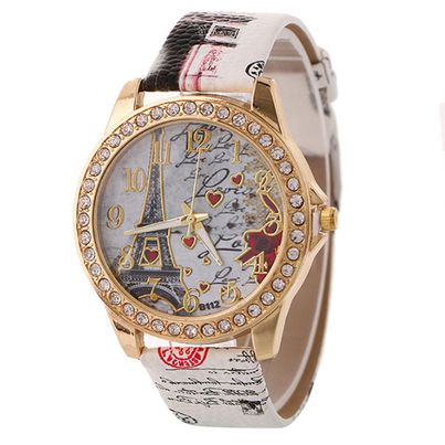 Hottest women's watch, fashionable diamond-encrusted iron tower printed belt, diamond-encrusted English watch for women (Code-1120)