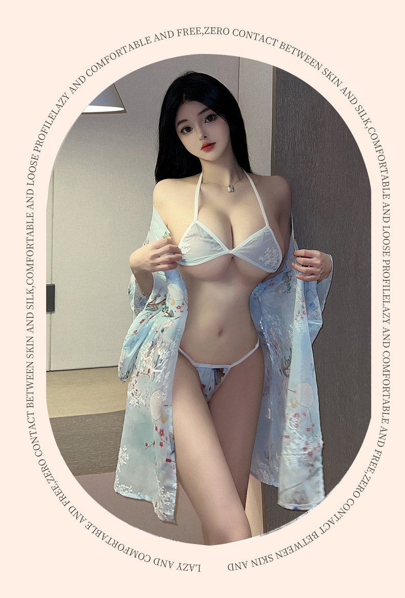 Sexy lingerie women's kimono bathrobe printed Japanese bow sexy (2589)