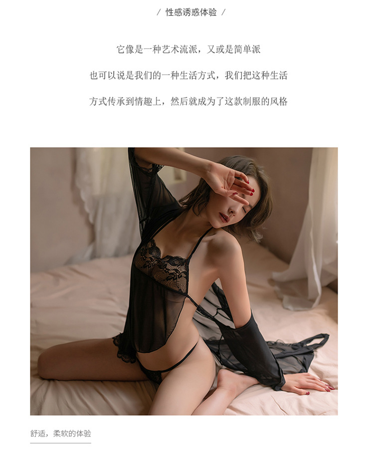 Sexy mesh bellyband erotic lingerie bathrobe set lace hot passion pure desire free to take off pajamas (1708)