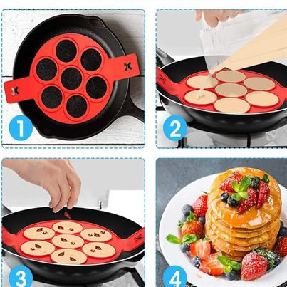 Silicone Pancake Maker Multiple Shapes 7 Holes Nonstick Baking Mold Ring Fried Egg Molds for Family