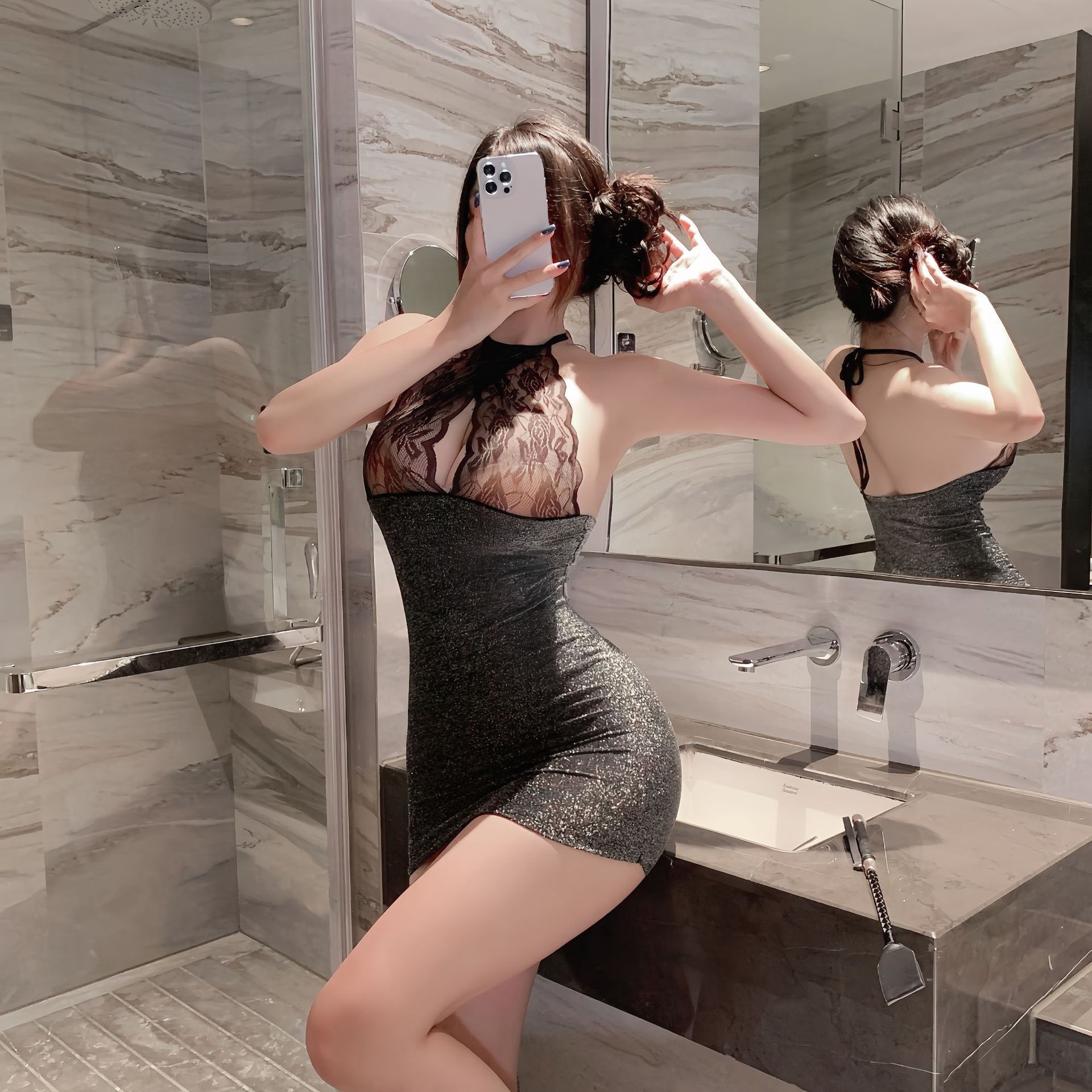 uniform-style seductive halter-neck bodysuit, nightclub sleepwear, bodycon skirt, qqny abstinence-style set 1139
