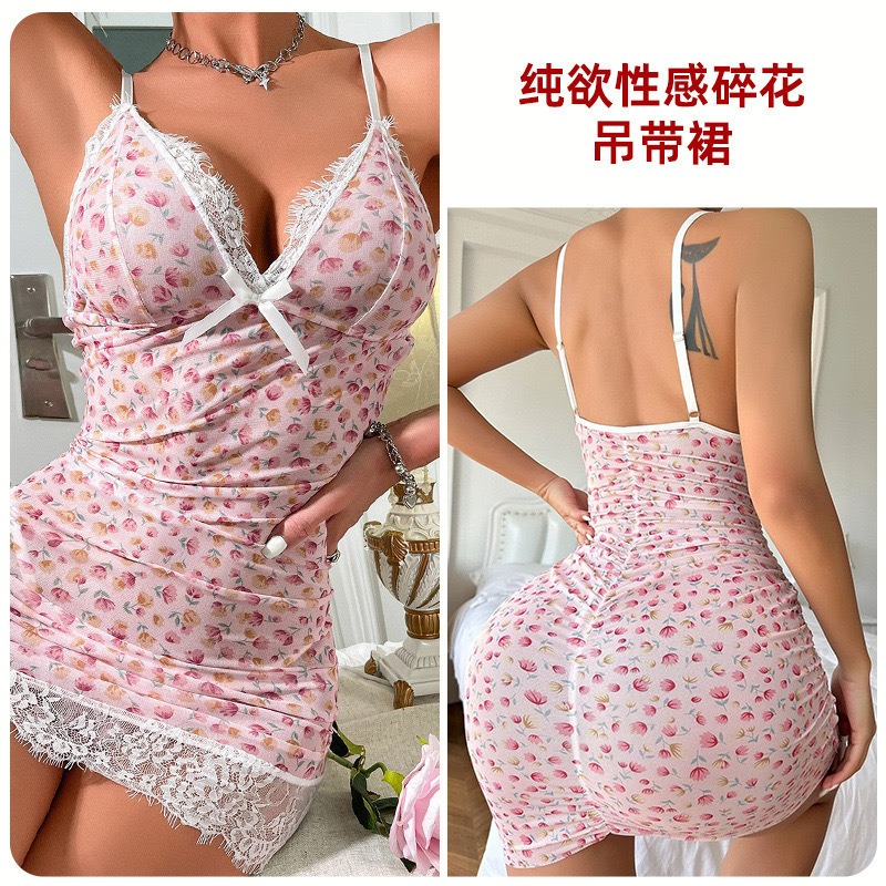 Amazon European and American New Hot Women's Fashion Sexy Floral Lace V Neck Hip Dress 1161