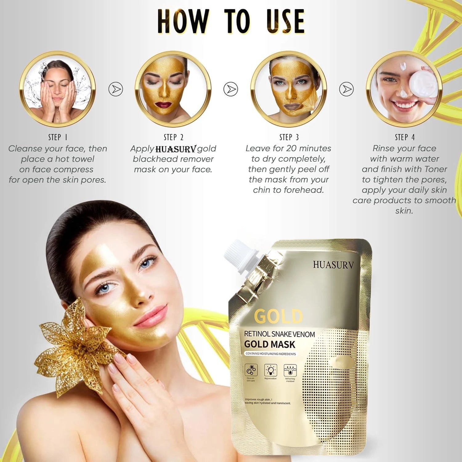 Huasurv Gold Mask, Gold Foil Rejuvenating Gold Peel Off Mask, Retinol Snake Venom Gold Mask