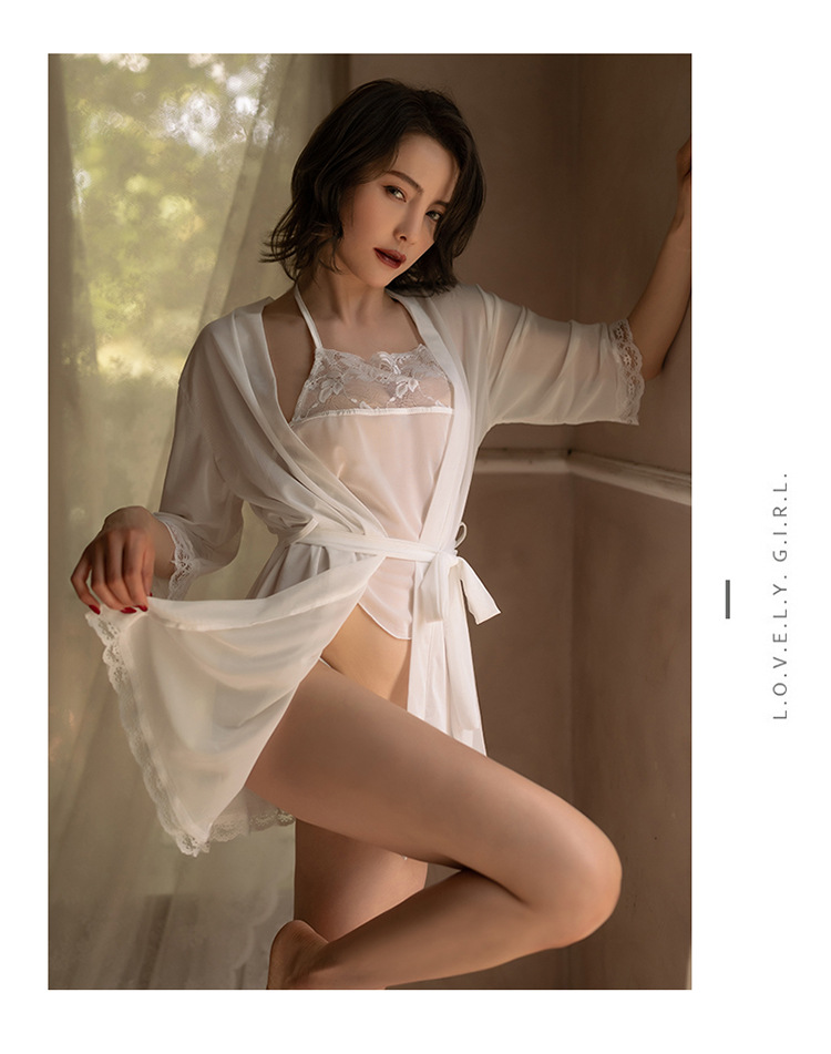 Sexy mesh bellyband erotic lingerie bathrobe set lace hot passion pure desire free to take off pajamas (1708)
